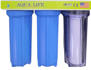 Triple Pre Filter 10″ with 3 Stages water filtration, first stage PP filter, second stage granular active carbon filter, third stage block carbon filter, fourth stage inline post carbon filter, the last stage inline mineral filter cartridge. The first 3 stages are with 10” blue filter housings. Choose Ozone Spring the best water filter in uae for healthy and safe drinking water.