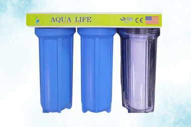 Triple Pre Filter 10″ with 3 Stages water filtration, first stage PP filter, second stage granular active carbon filter, third stage block carbon filter, fourth stage inline post carbon filter, the last stage inline mineral filter cartridge. The first 3 stages are with 10” blue filter housings.